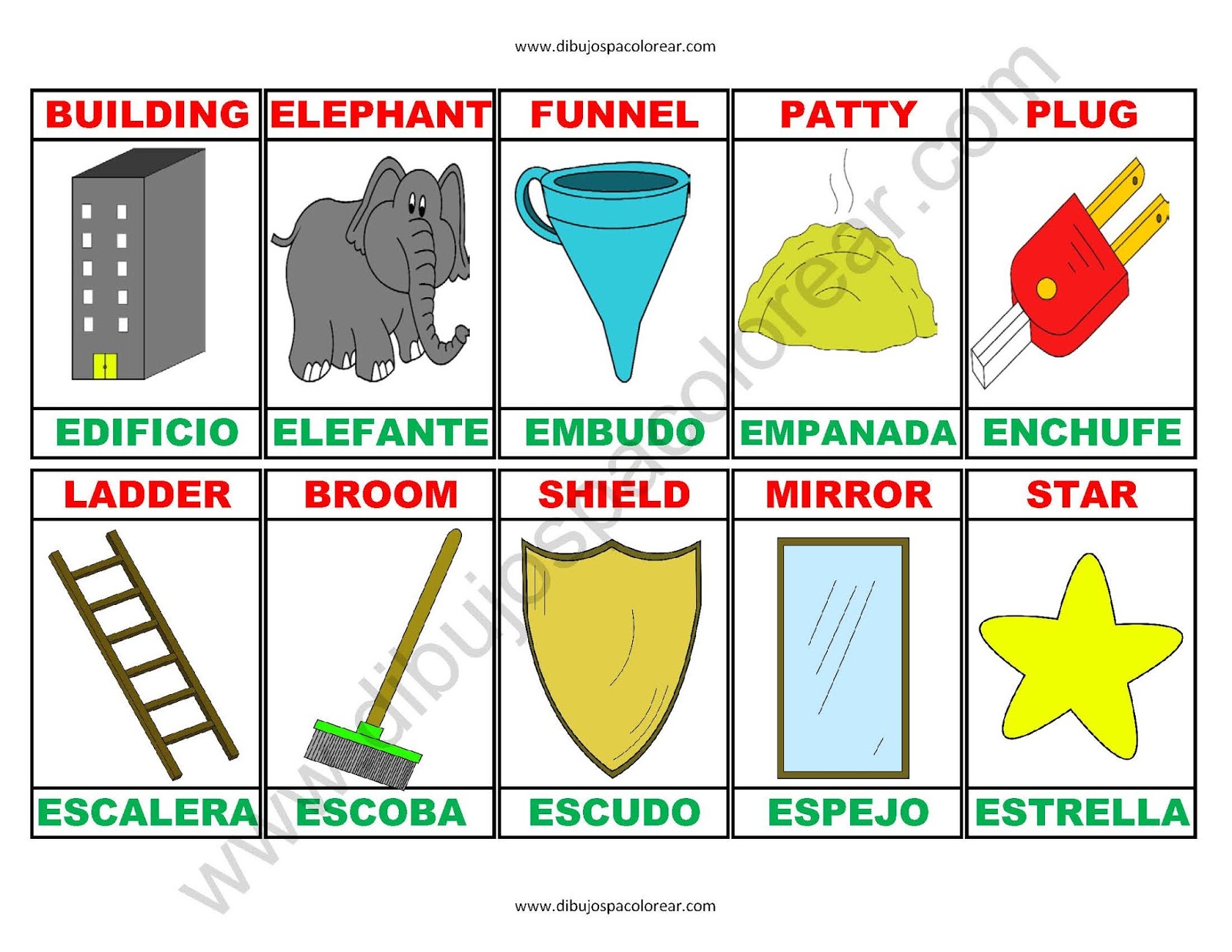 Esperamos que disfrutes de este memorama de la letra E en español - ingles, El memorama esta listo para que lo imprimas en tamaño carta, recórtalo y juega.