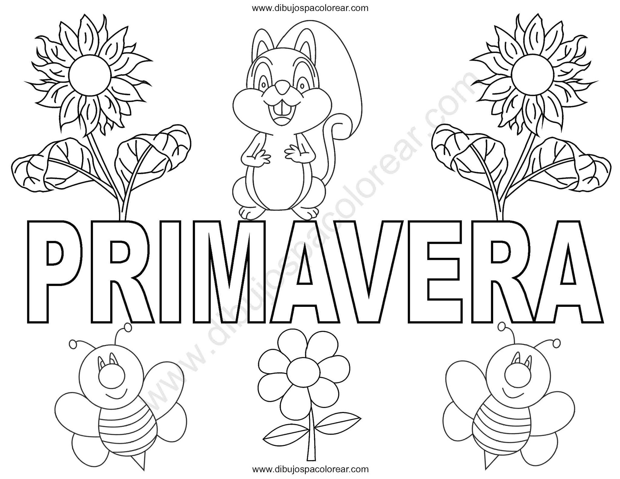Como la casi estamos en la temporada de primavera te dejamos este dibujo con girasoles, margaritas, abejas y una ardilla muy linda, ¿Ya tienes preparados tus colores?