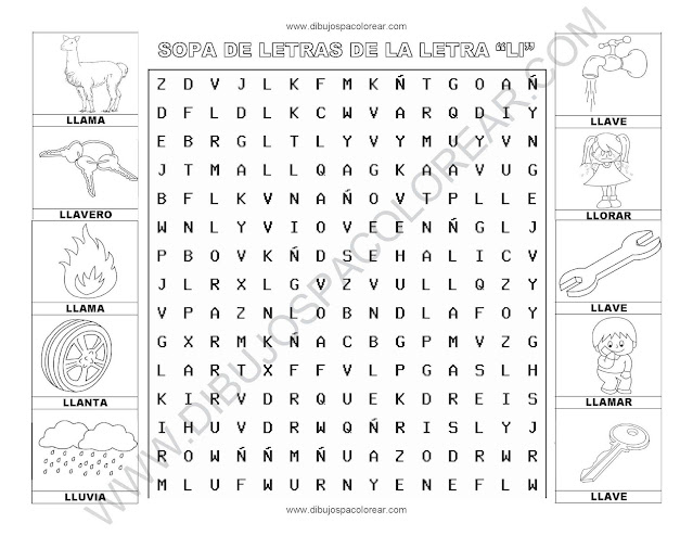 Sopa de letras de la letra LL