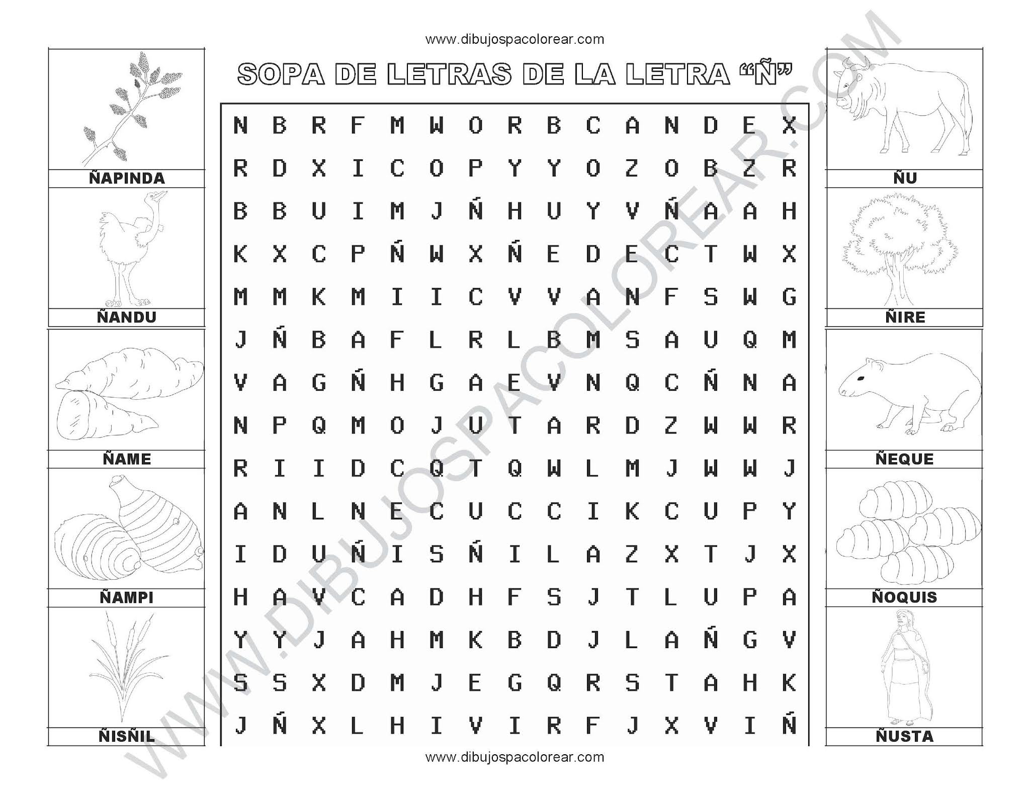 Sopa de letras de la letra Ñ