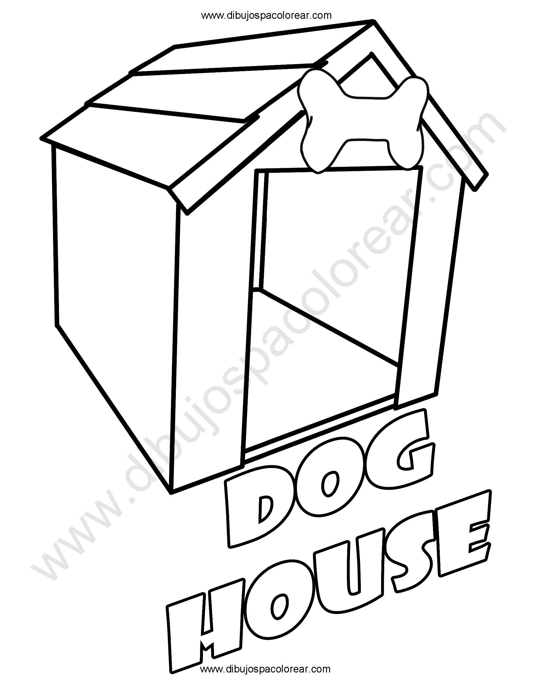 Una casita de perro para colorear, pon el nombre de tu mascota en el hueso.