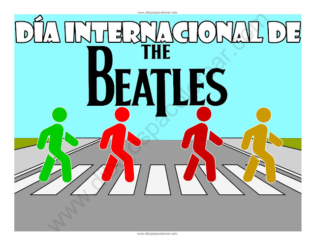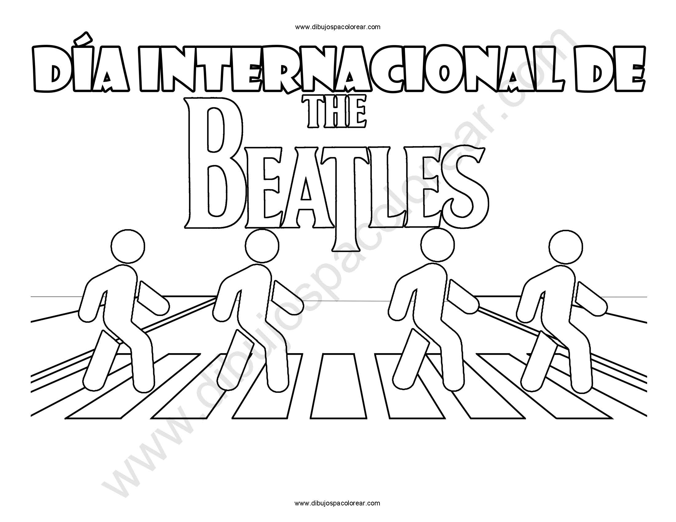 Día Internacional de The Beatles dibujo a color y para colorear.