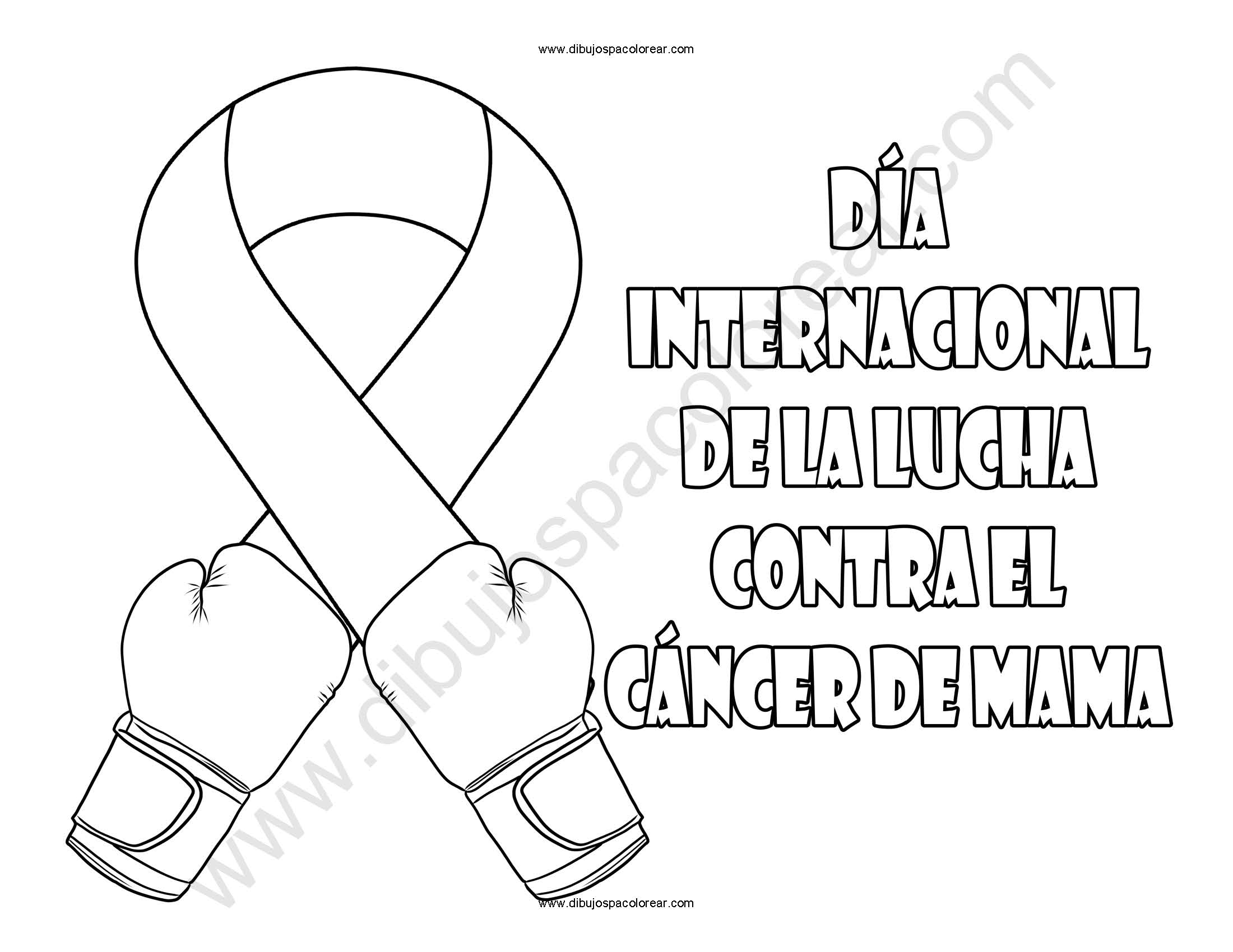 Día Internacional de la Lucha contra el Cáncer de Mama dibujo a color y para colorear.