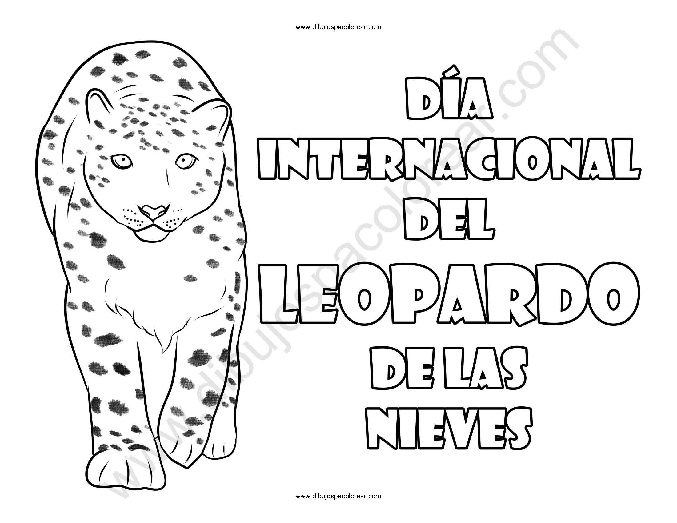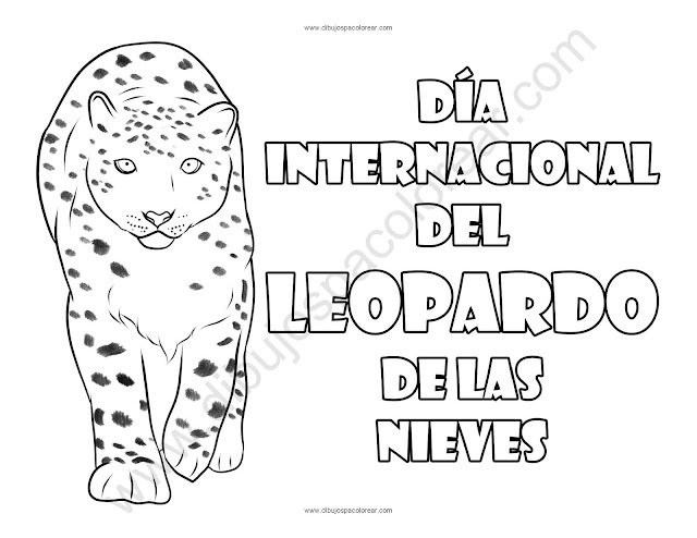 Día Internacional del Leopardo de las Nieves dibujo a color y para colorear