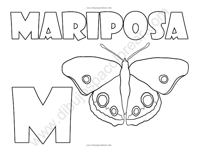 Mariposa letra M abecedario dibujo a color y para colorear