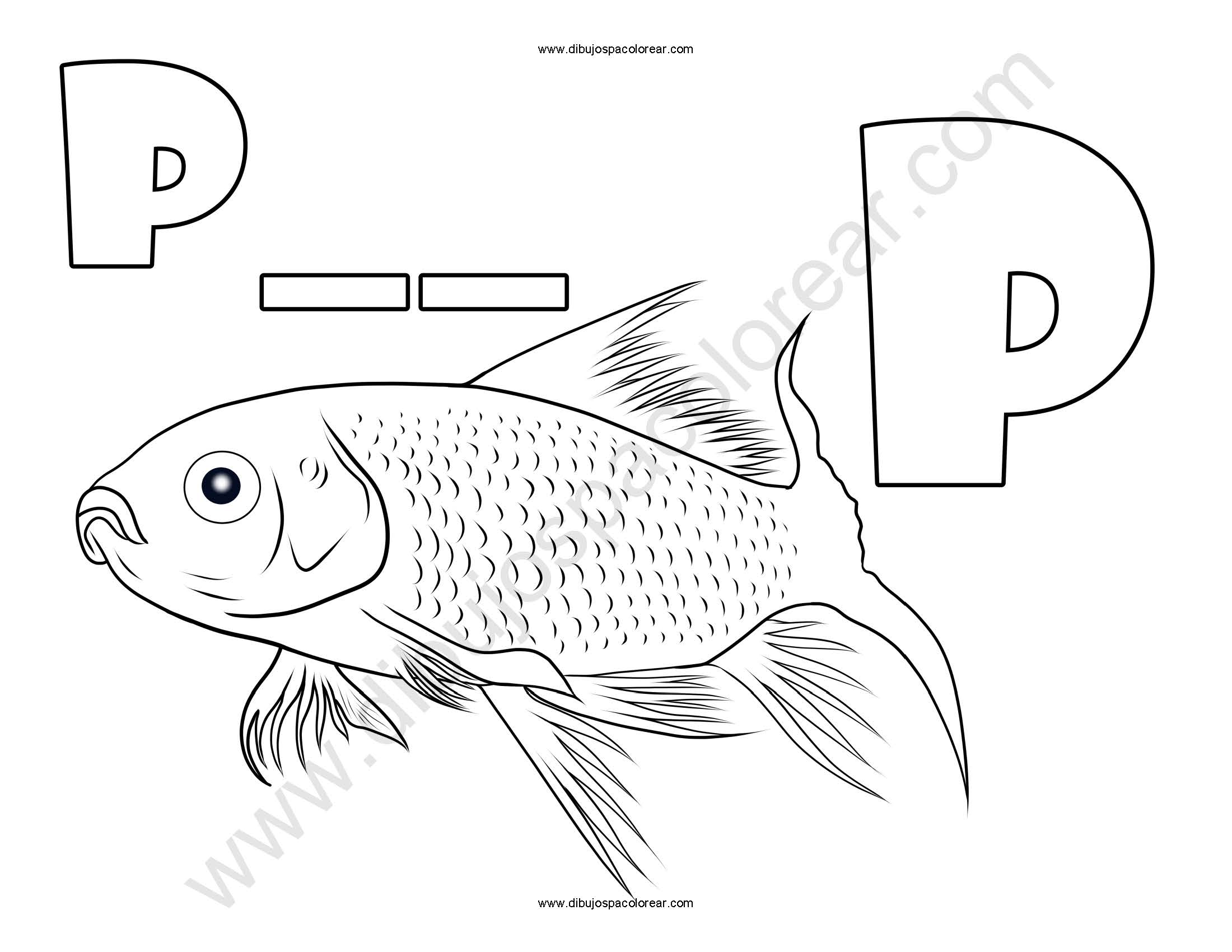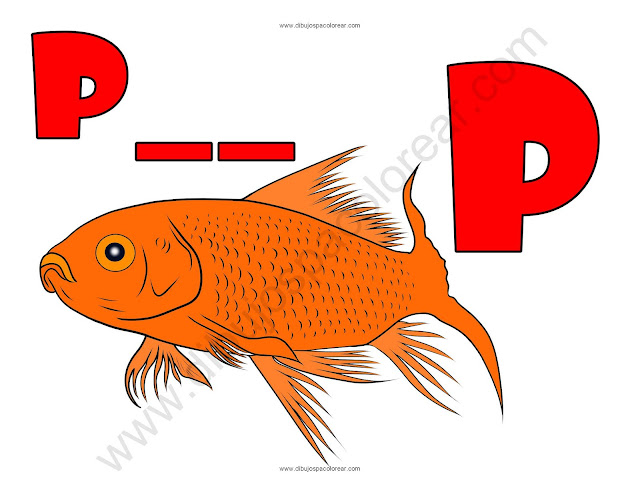 Pez letra P abecedario dibujo a color y para colorear