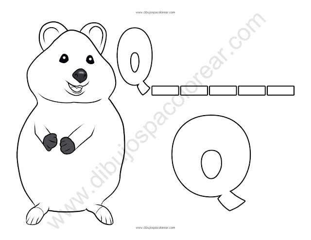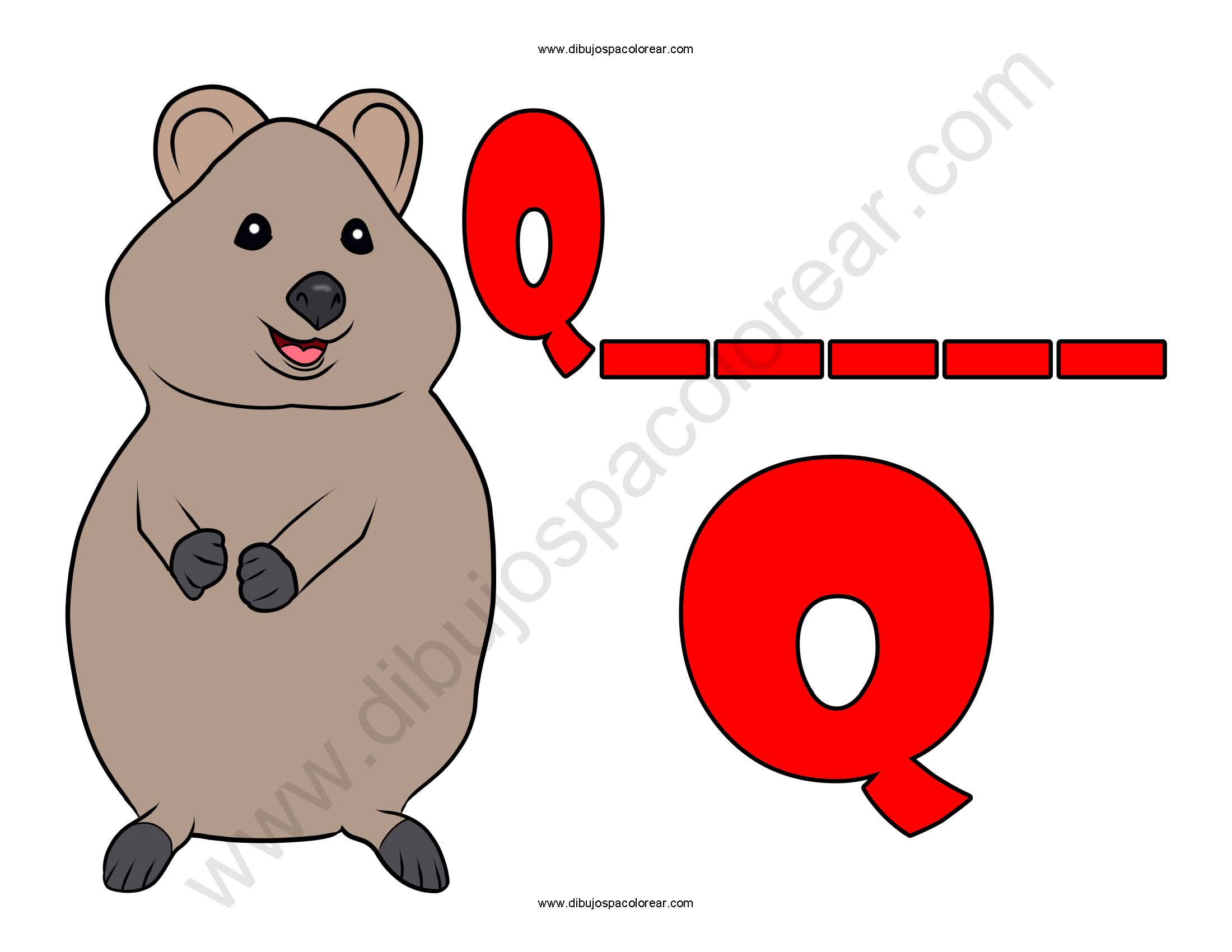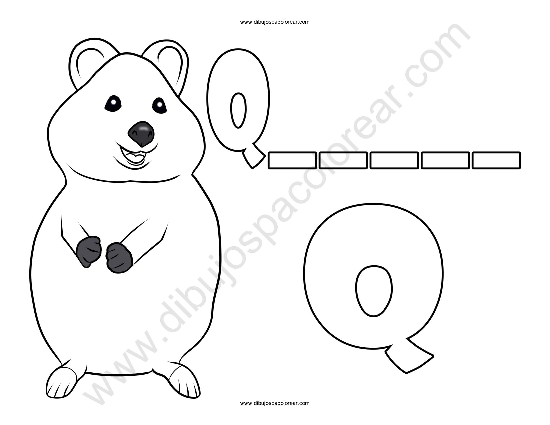 Quokka letra Q abecedario dibujo a color y para colorear.