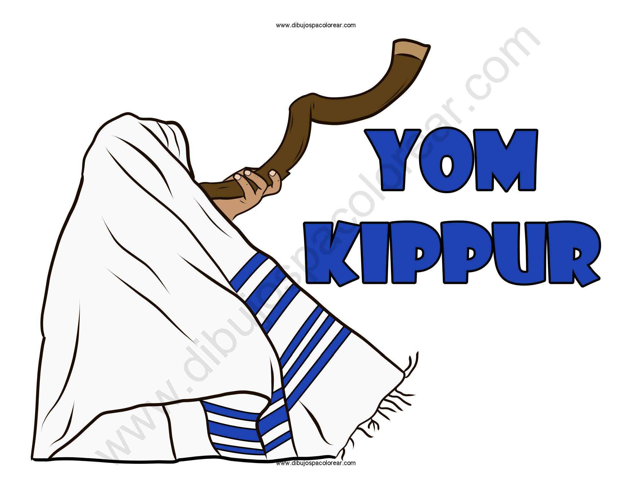 judía cada 4 de octubre celebra Yom Kippur o Día de la Expiación, dibujo a color y para colorear.