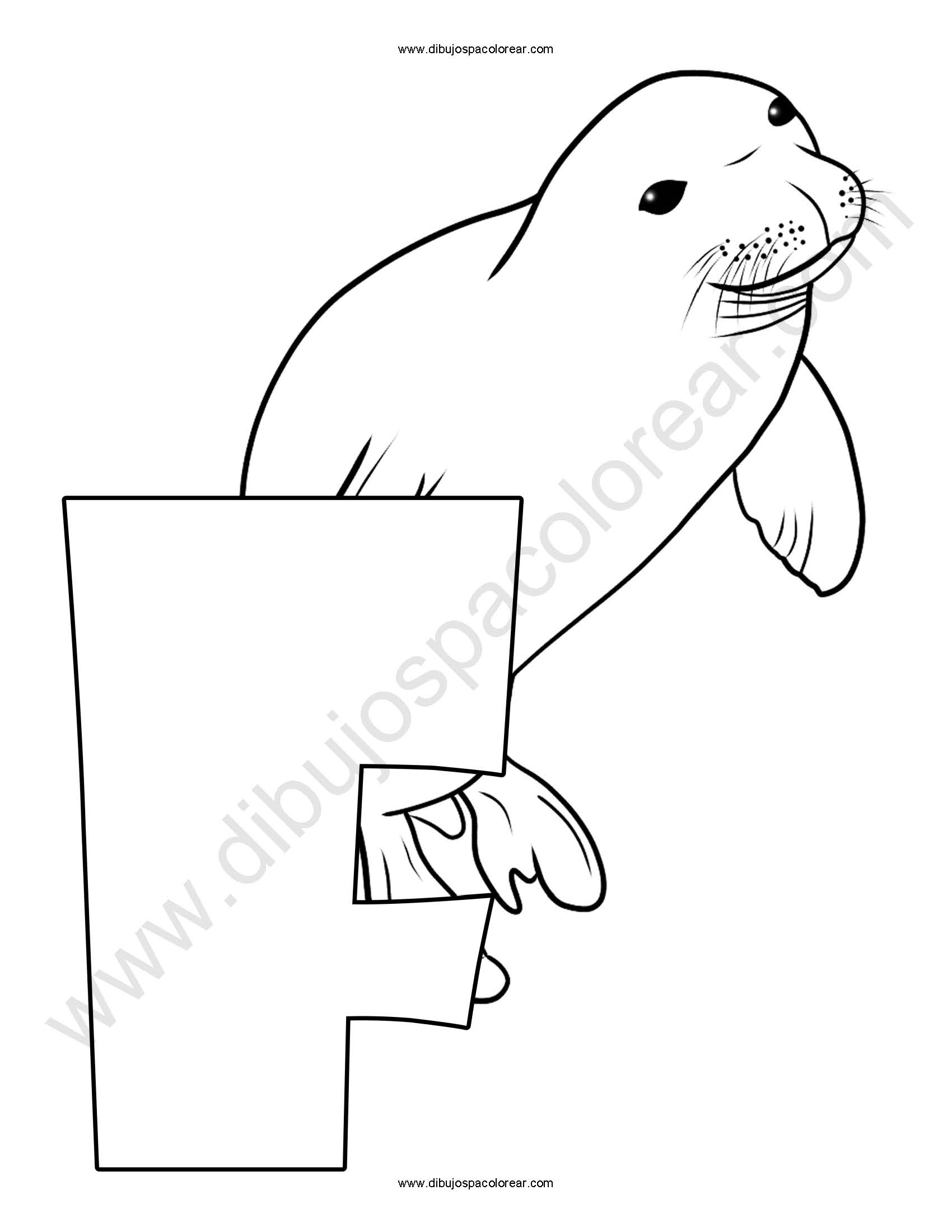 Letra F Foca abecedario dibujo a color y para colorear