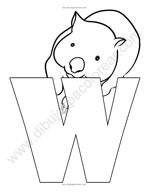 Letra W Wómbat abecedario dibujo a color y para colorear