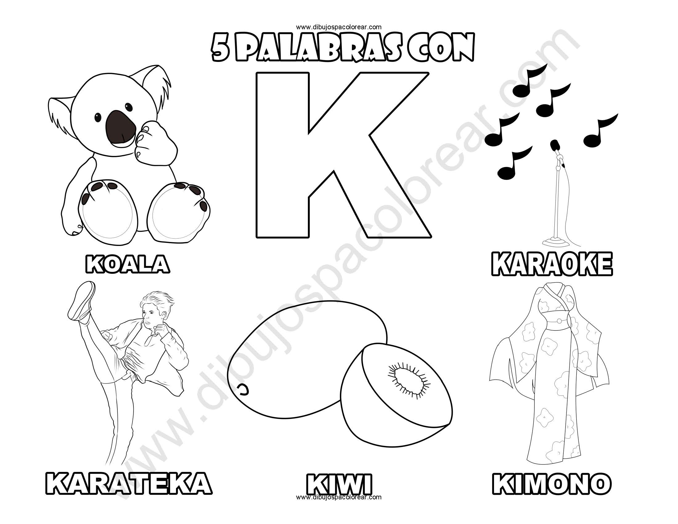 Cinco Palabras con la letra K dibujo a color y para colorear.