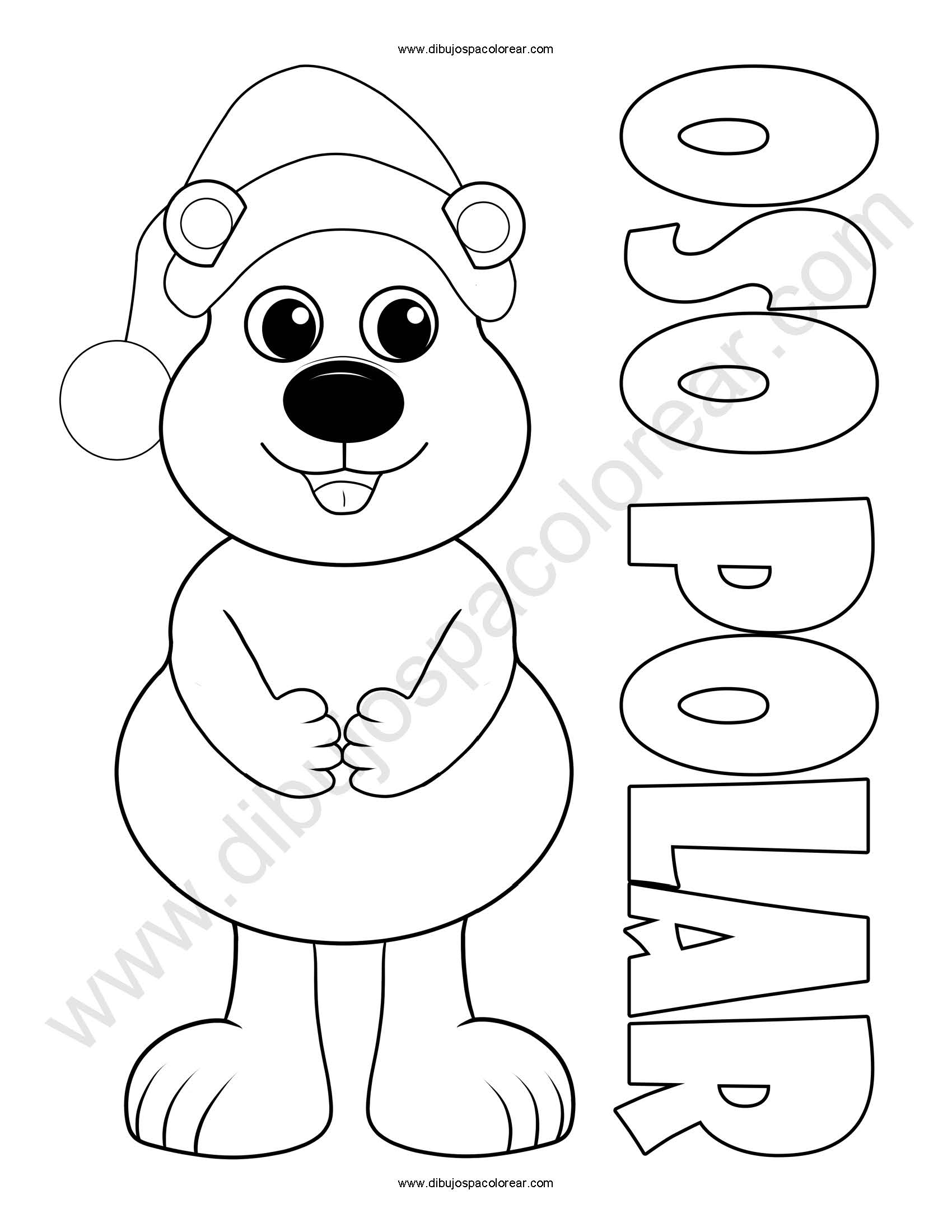 Oso Polar Temporada navideña Dibujo a color y para colorear.