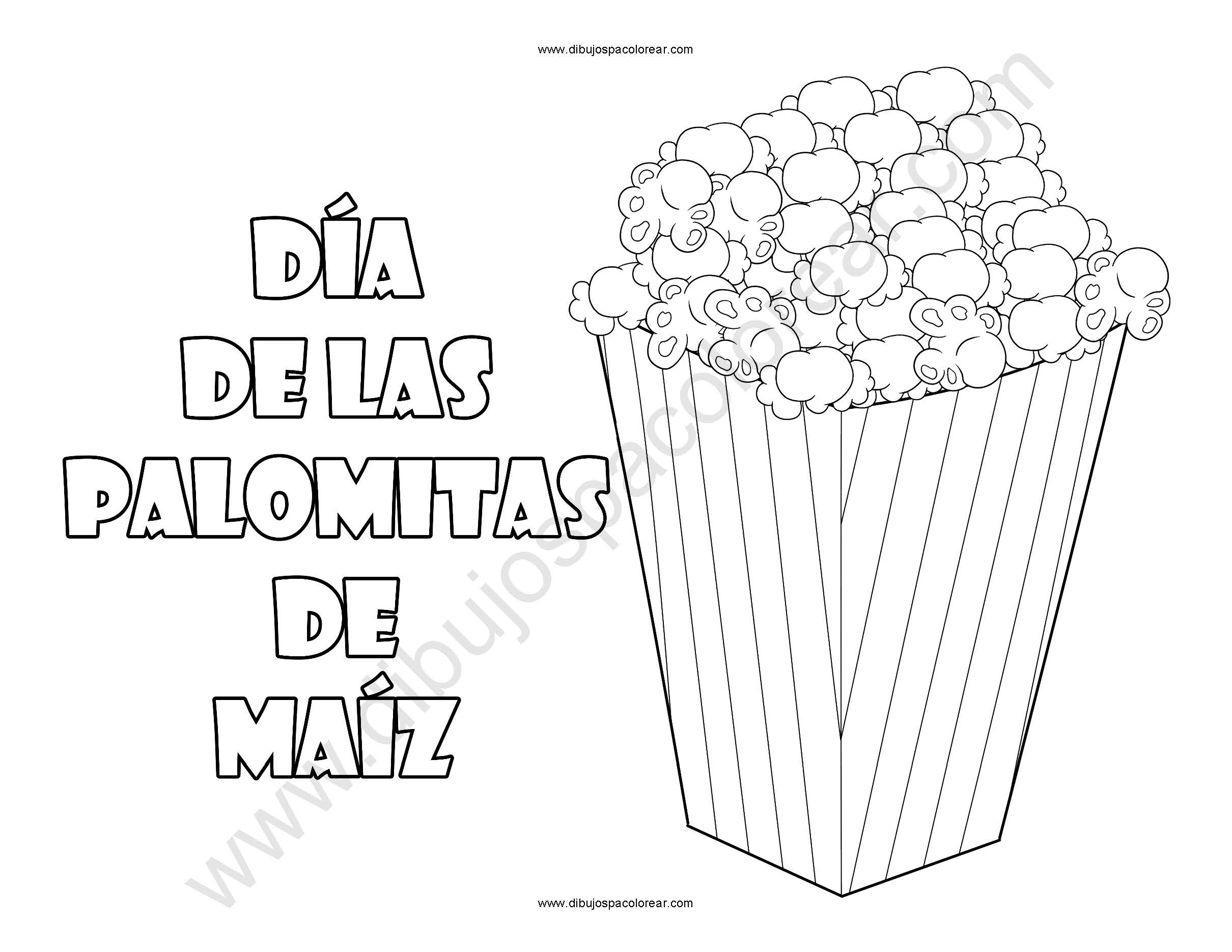 Dia de las Palomitas de Maíz dibujo a color y para colorear