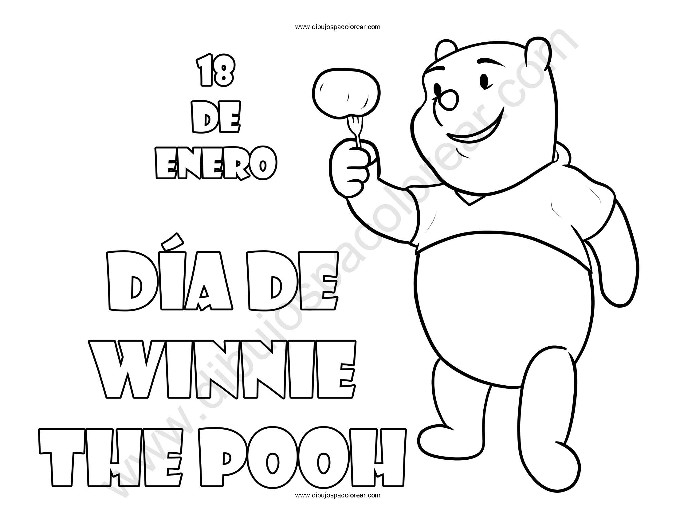 Día de Winnie The Pooh dibujo a color y para colorear.