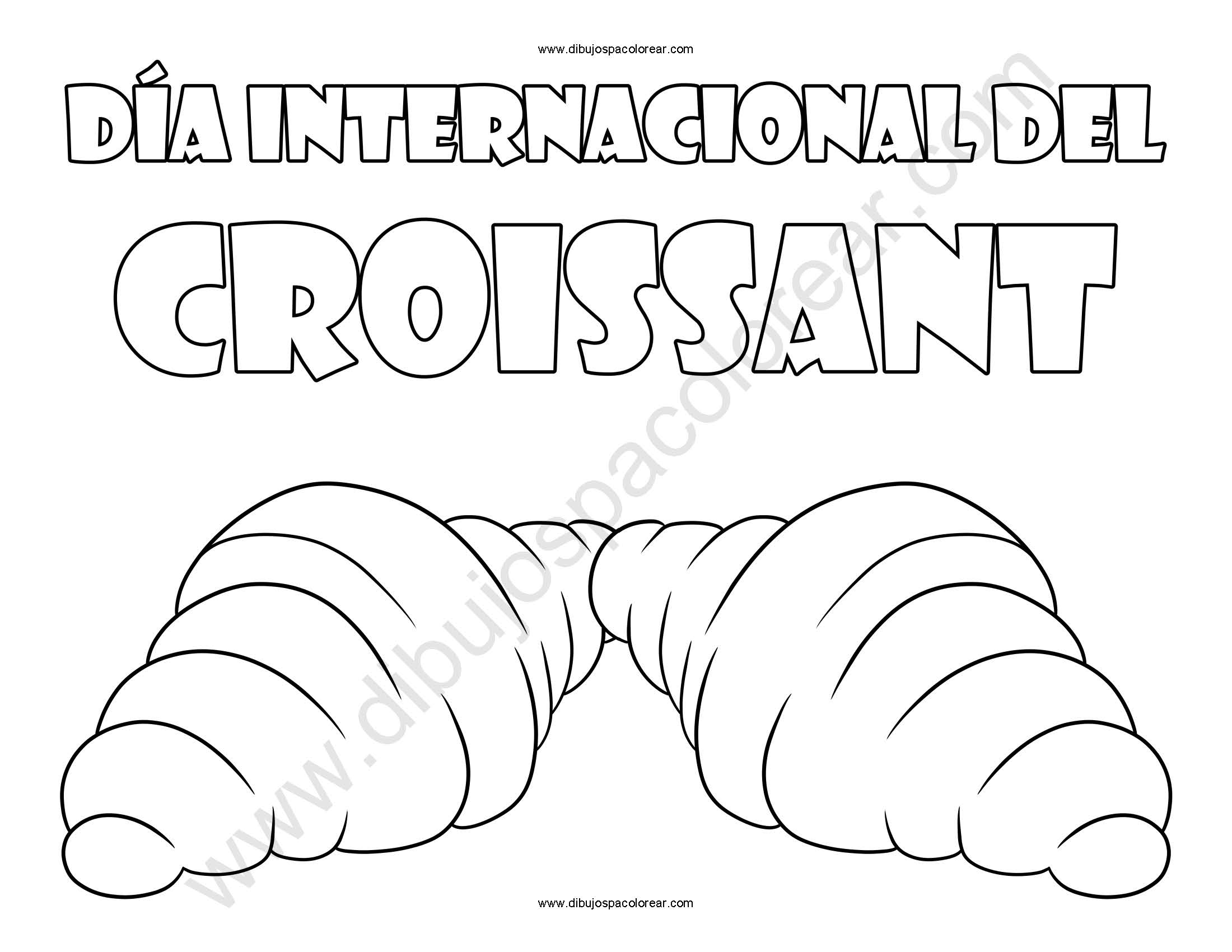 Dia Internacional del Croissant dibujo a color y para colorear.