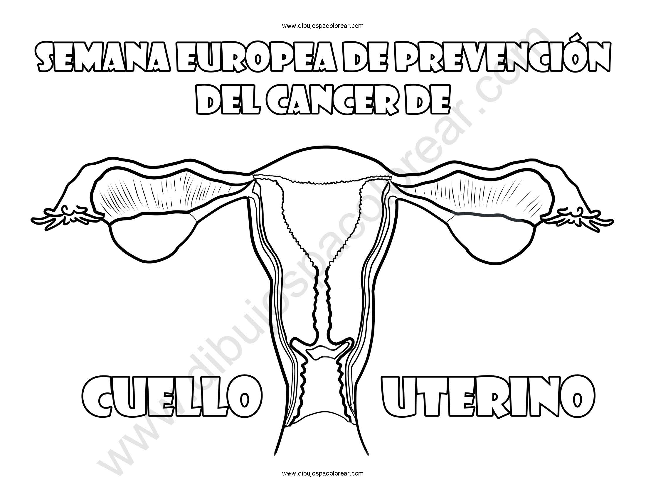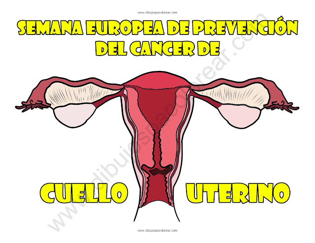 Semana Europea de Prevención del Cáncer de Cuello Uterino dibujo a color y para colorear.
