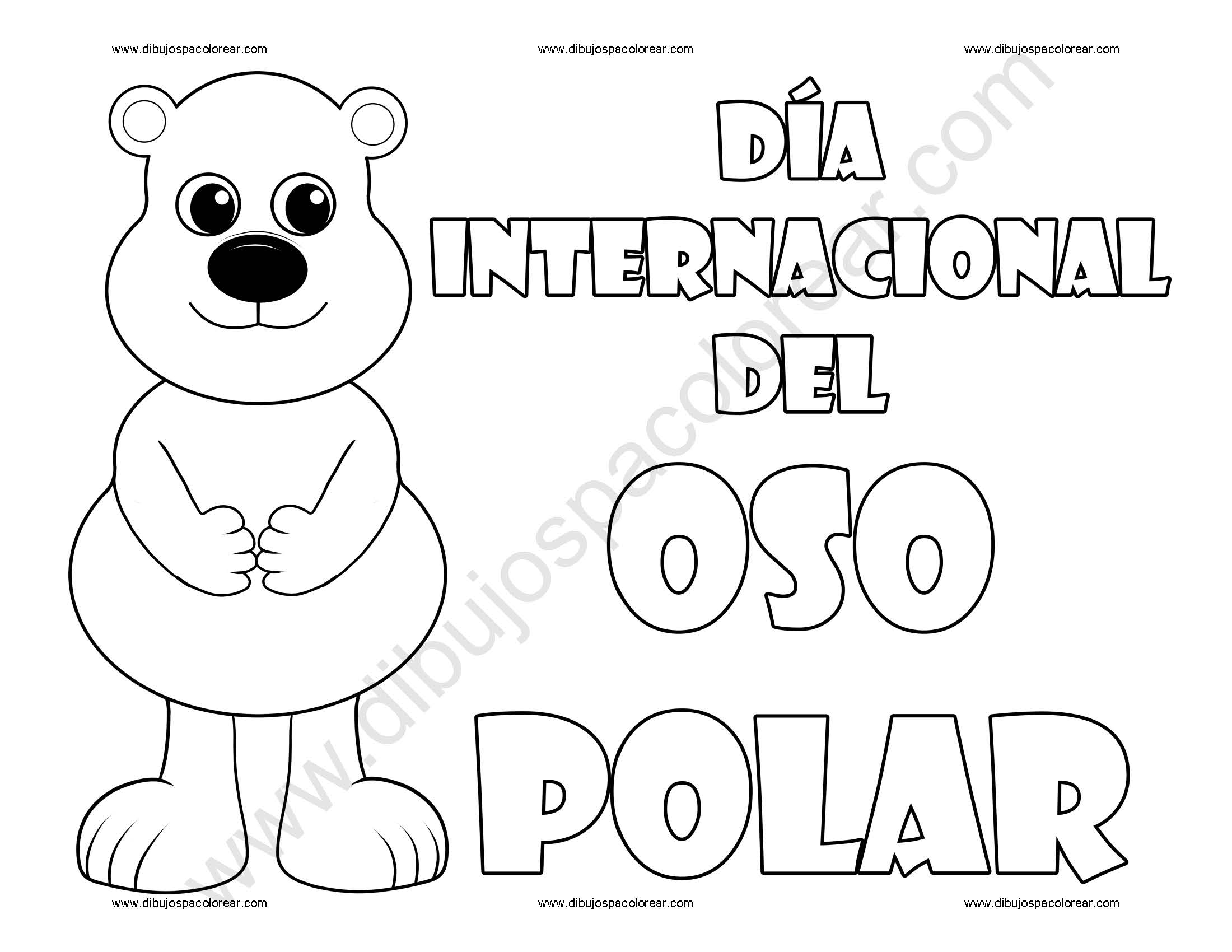 Dia Internacional del Oso Polar dibujo a color y para colorear