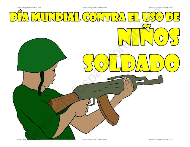 Día Mundial Contra el Uso de Niños Soldado dibujo a color y para colorear