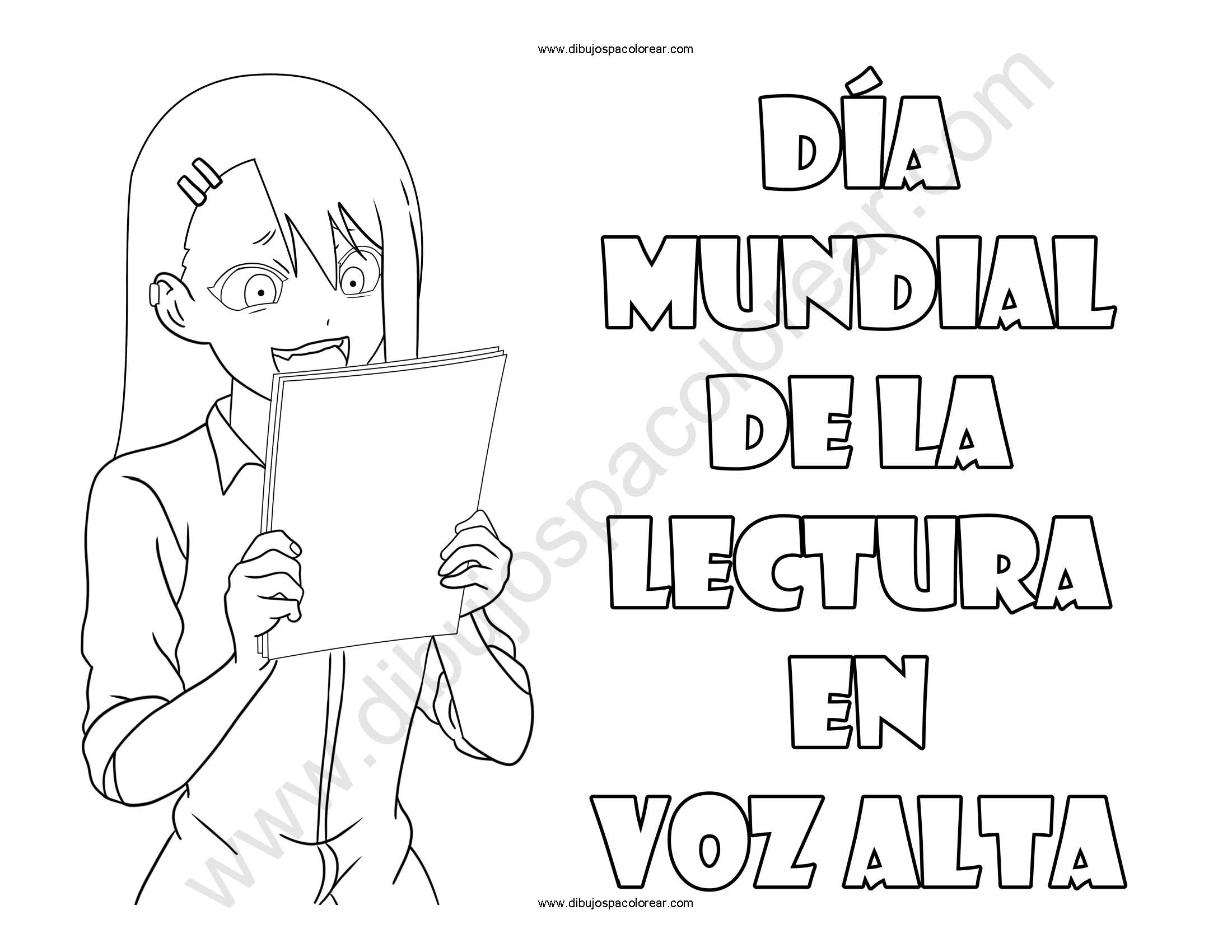 Dia Mundial de la Lectura en Voz Alta dibujo a color y para colorear