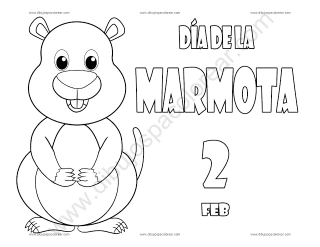 Dia Mundial de la Marmota dibujo a color y para colorear.