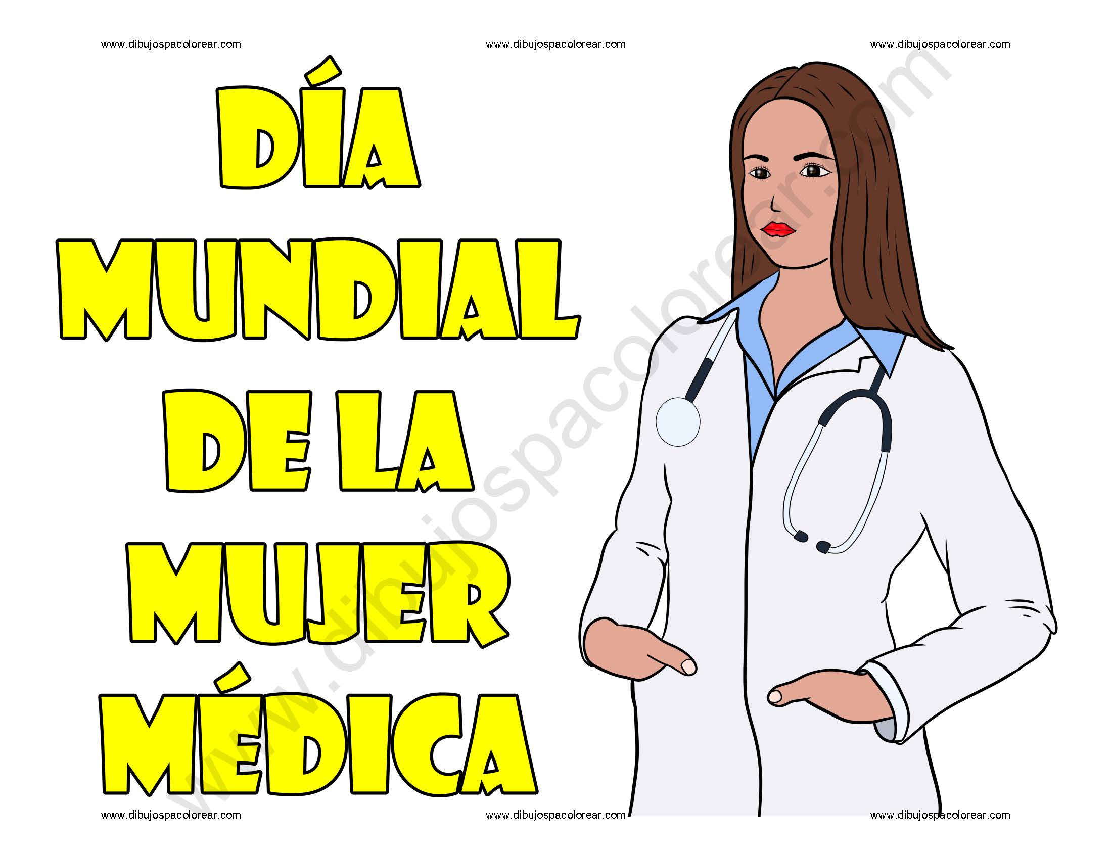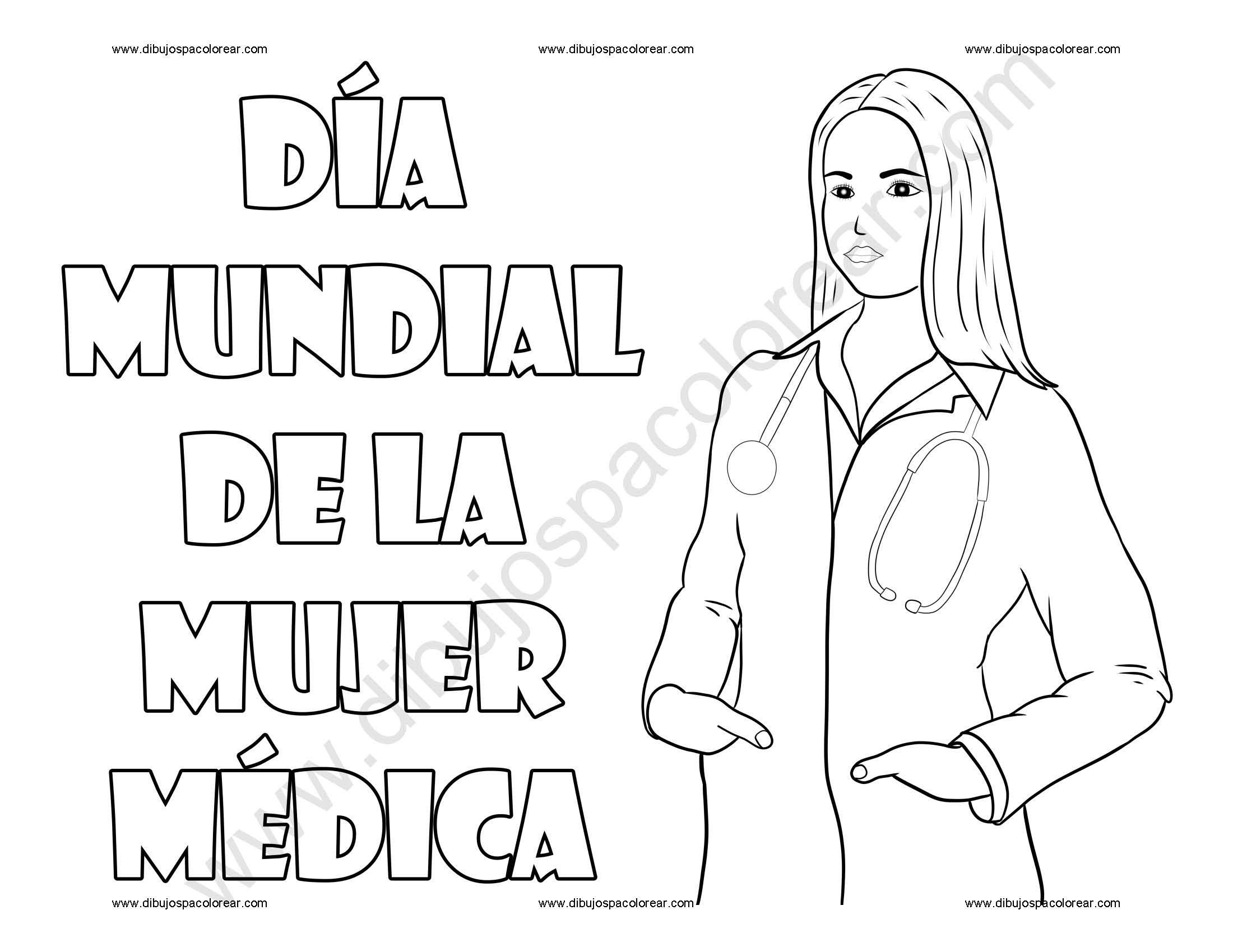 Día Mundial de la Mujer Médica dibujo a color y para colorear