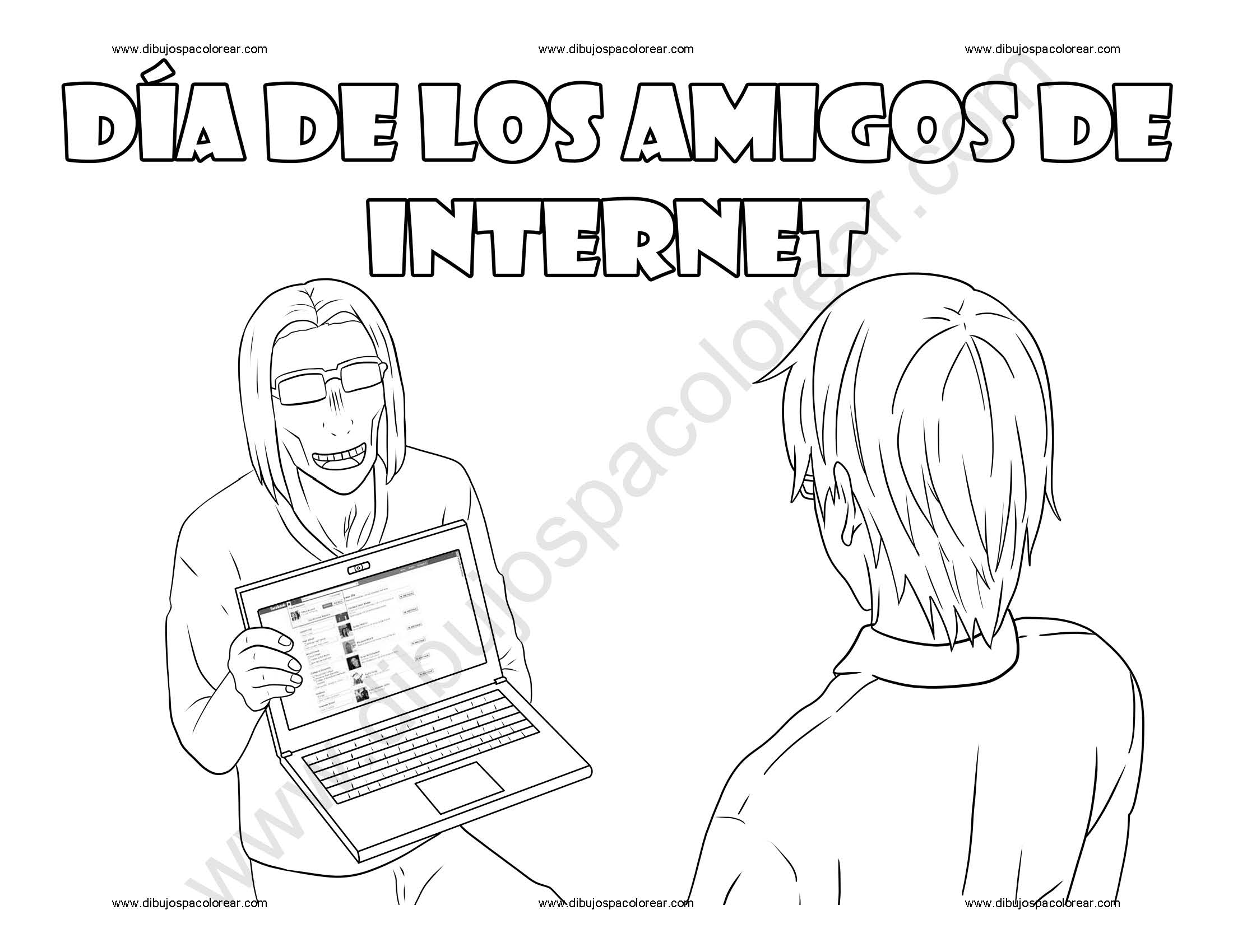 Día Mundial de los Amigo de Internet dibujo a color y para colorear