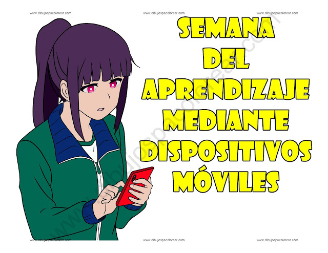 Semana del Aprendizaje mediante dispositivos Móviles dibujo a color y para colorear.