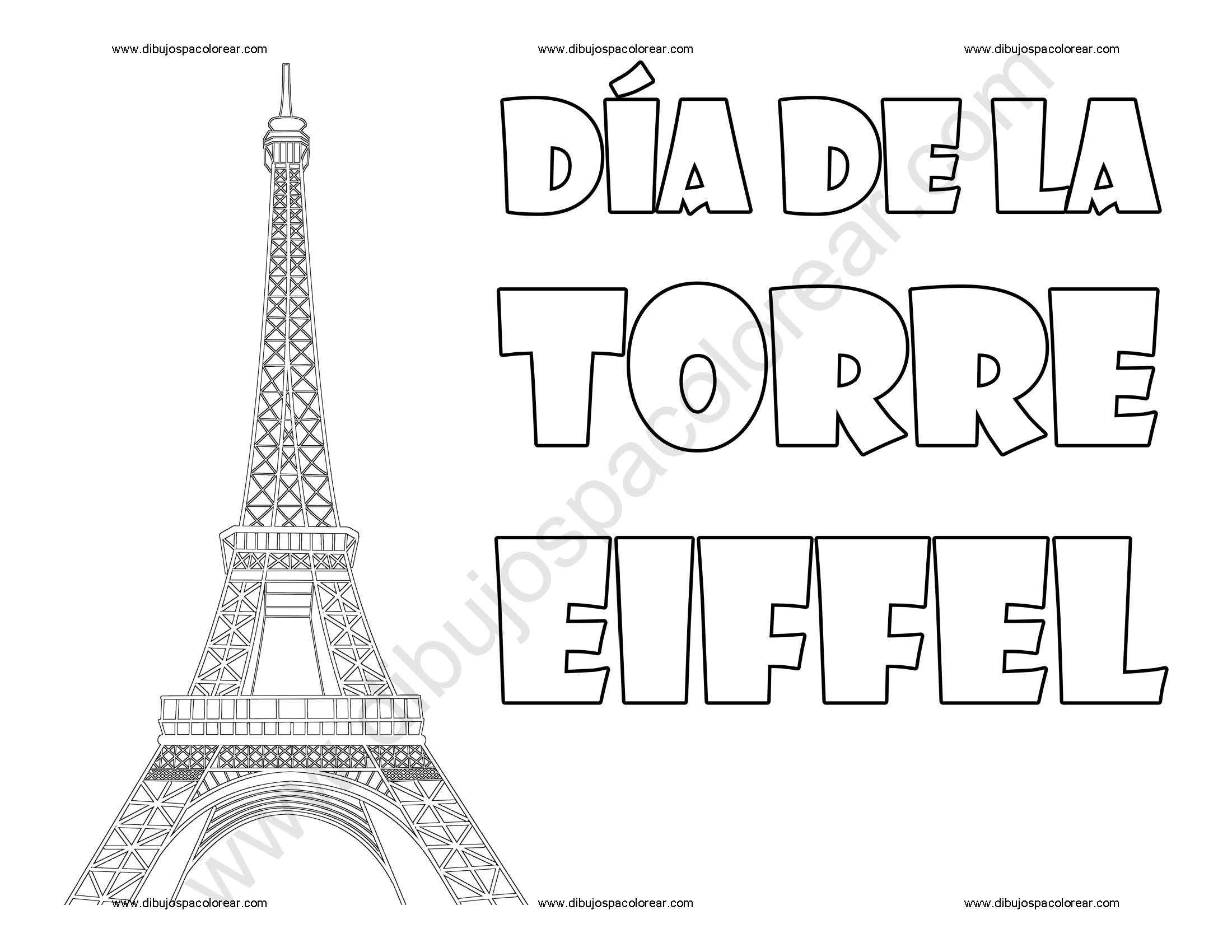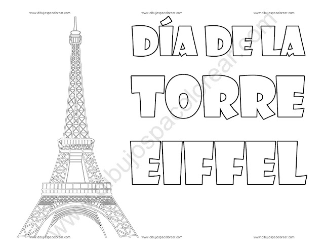 Día de la Torre Eiffel dibujo a color y para colorear.