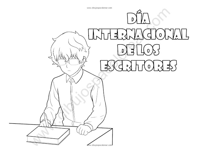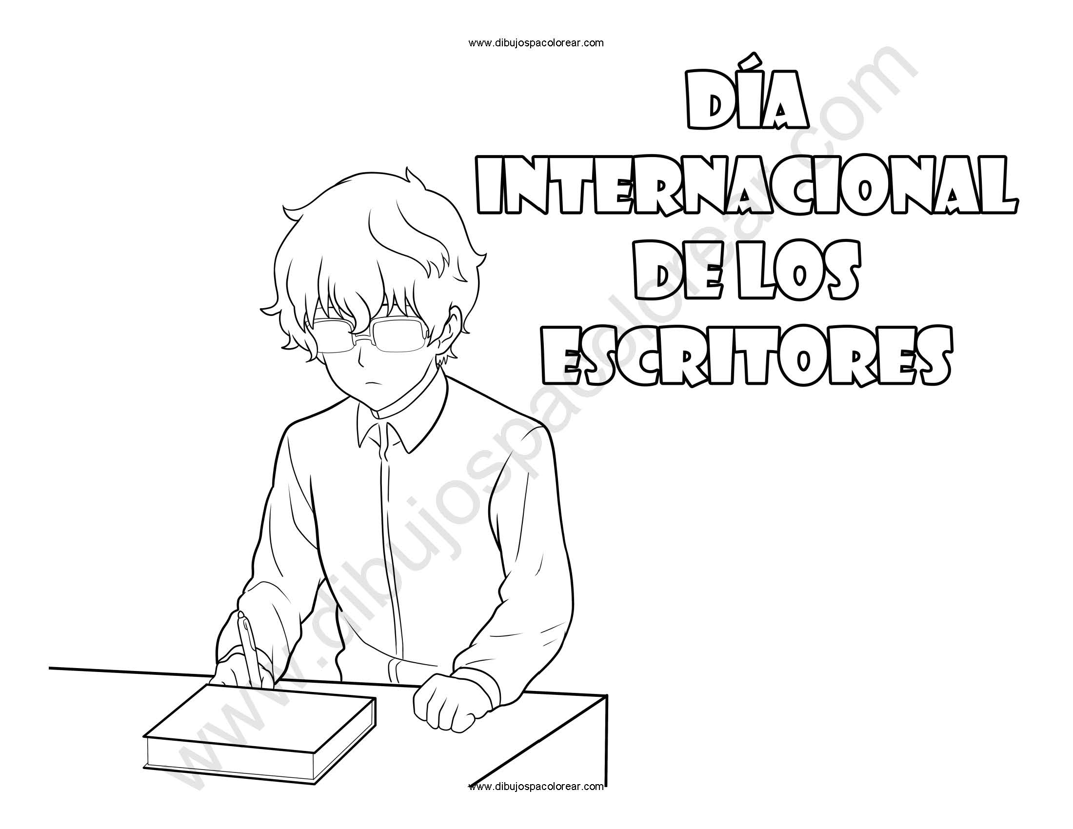 Día Internacional de los Escritores dibujo a color y para colorear.