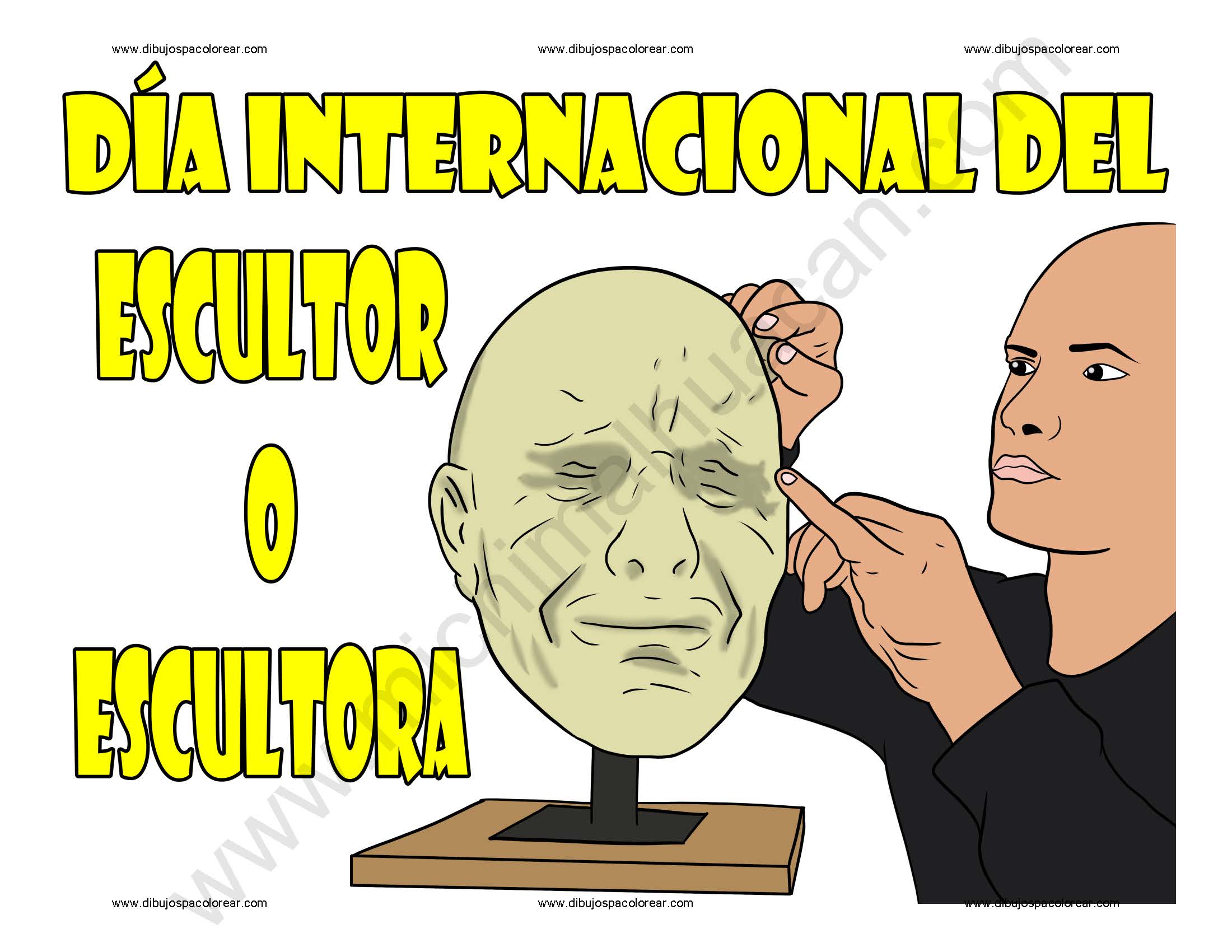 Día Internacional del Escultor o escultora dibujo a color y para colorear