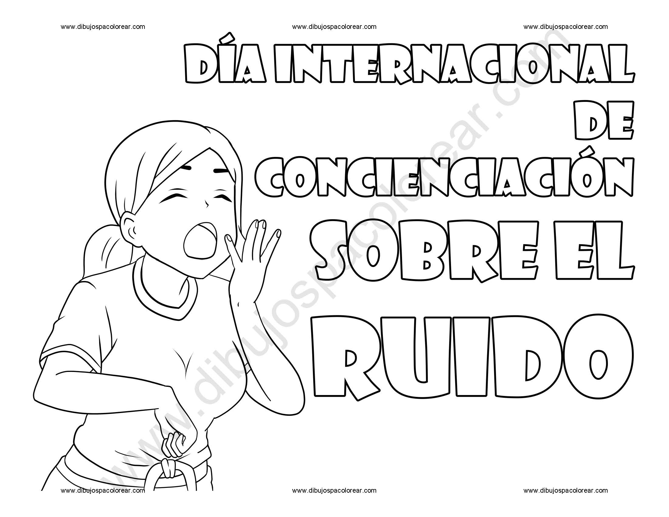 Día Internacional de Concienciación sobre el Ruido dibujo a color y para colorear