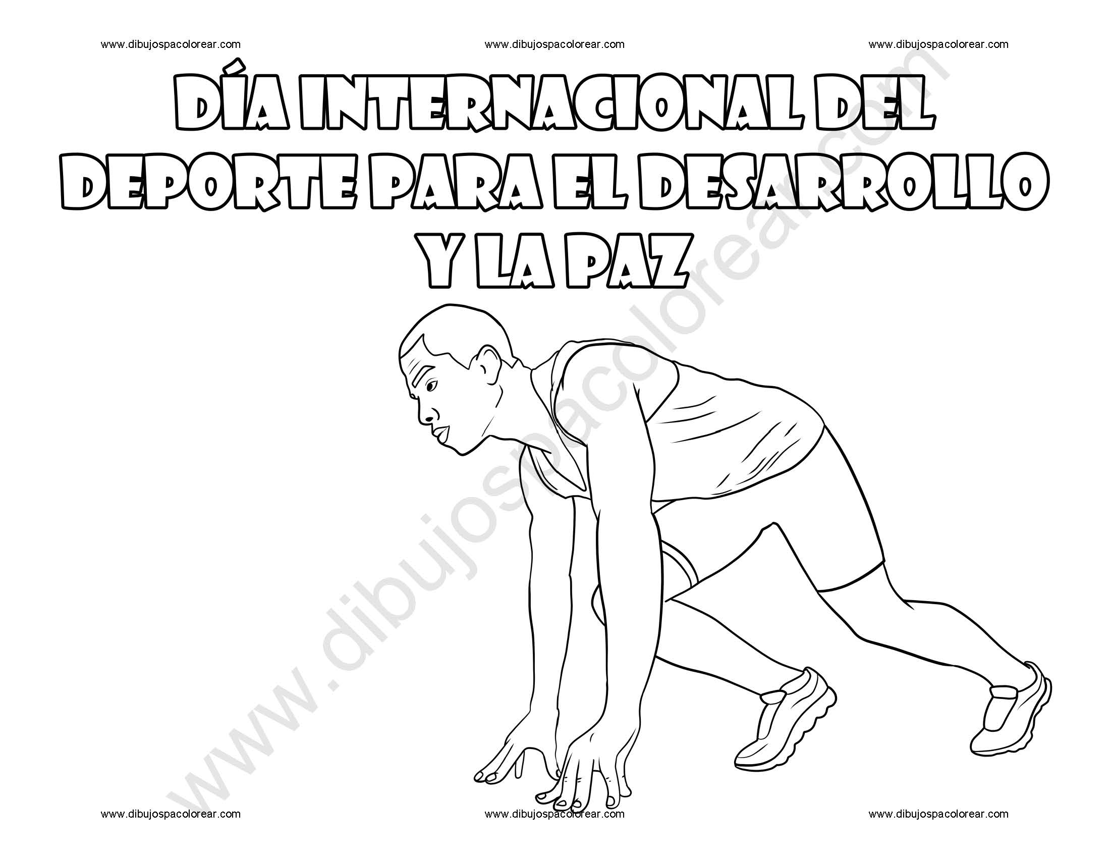 Dia internacional del Deporte para el Desarrollo y la Paz dibujo a color y para colorear.