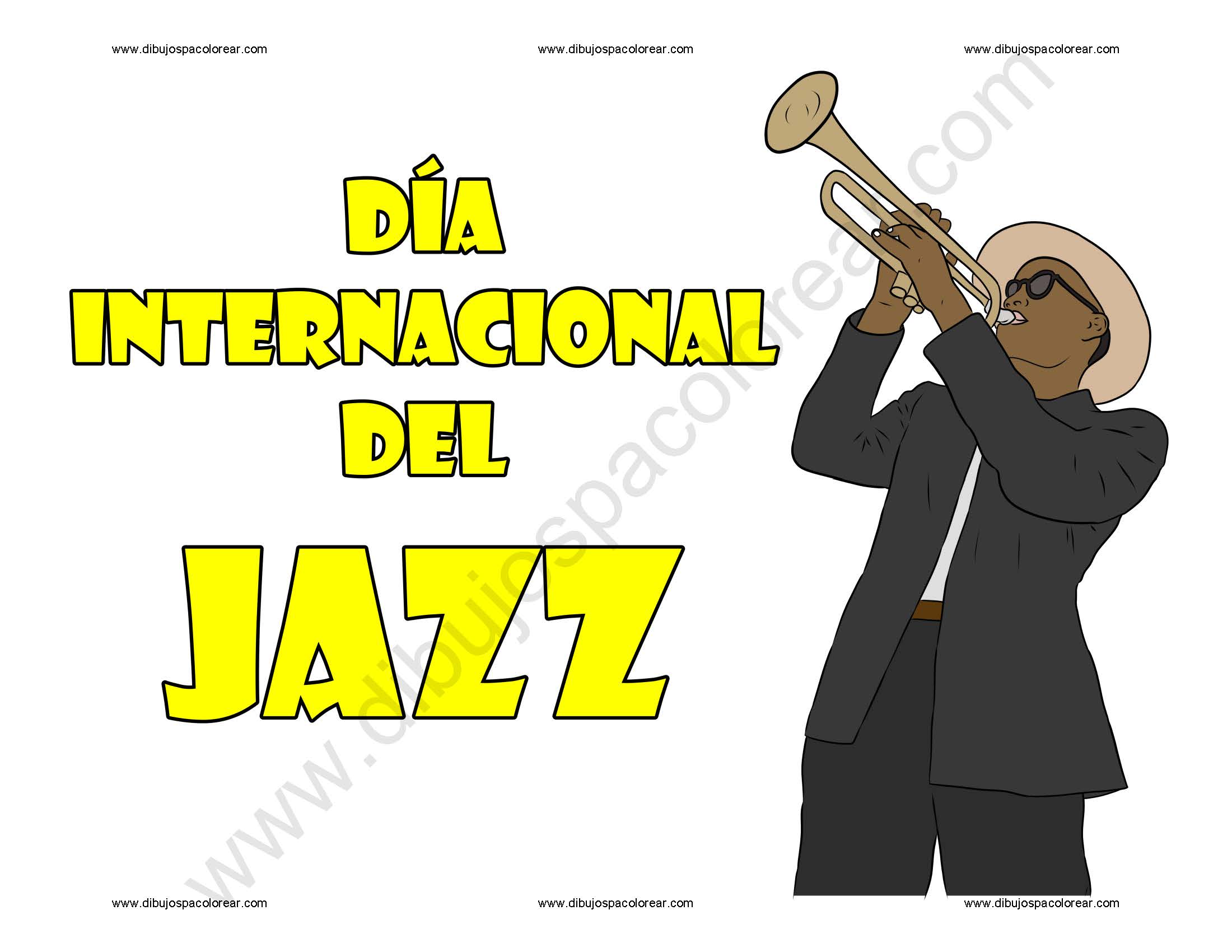 Día internacional del Jazz dibujo a color y para colorear