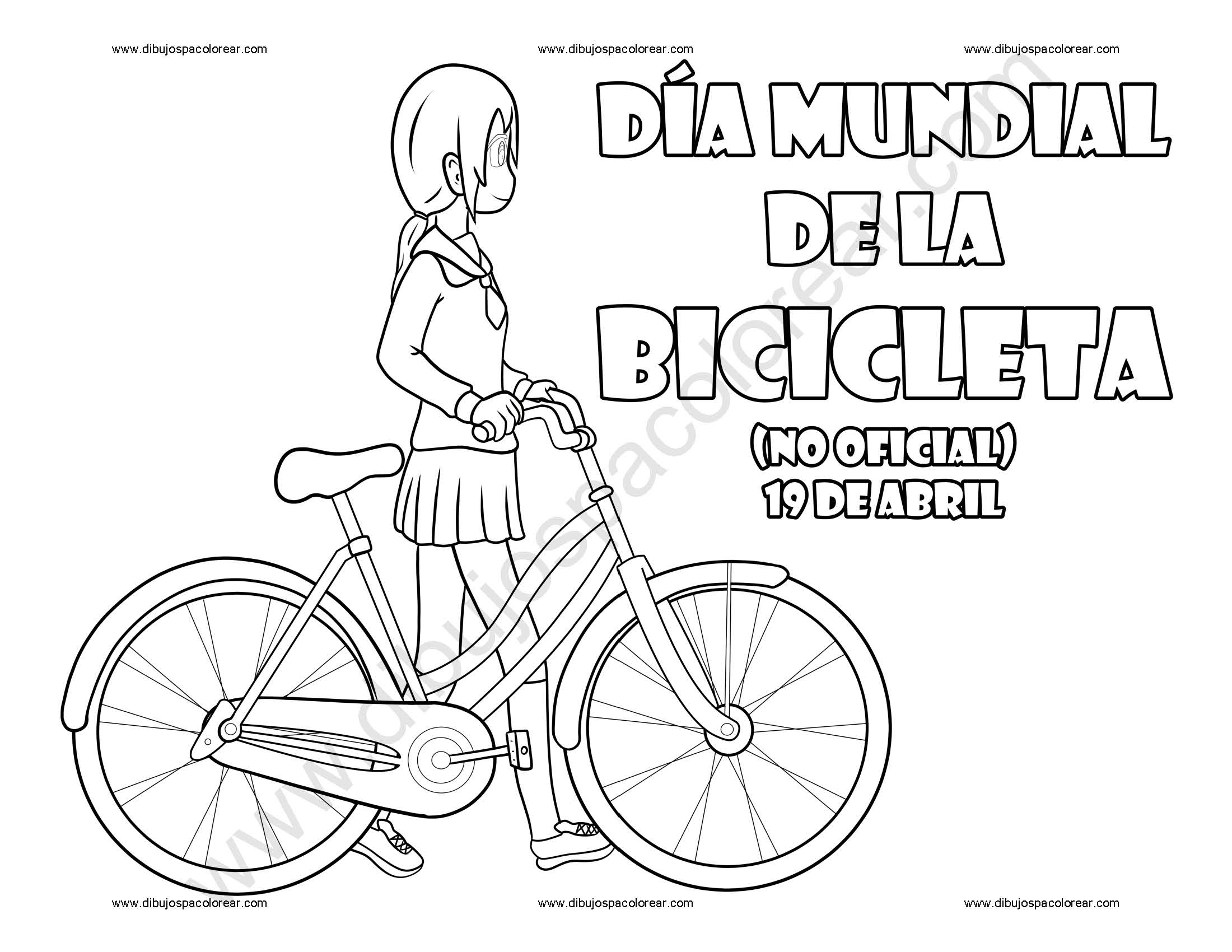 Día Mundial de la Bicicleta dibujo a color y para colorear