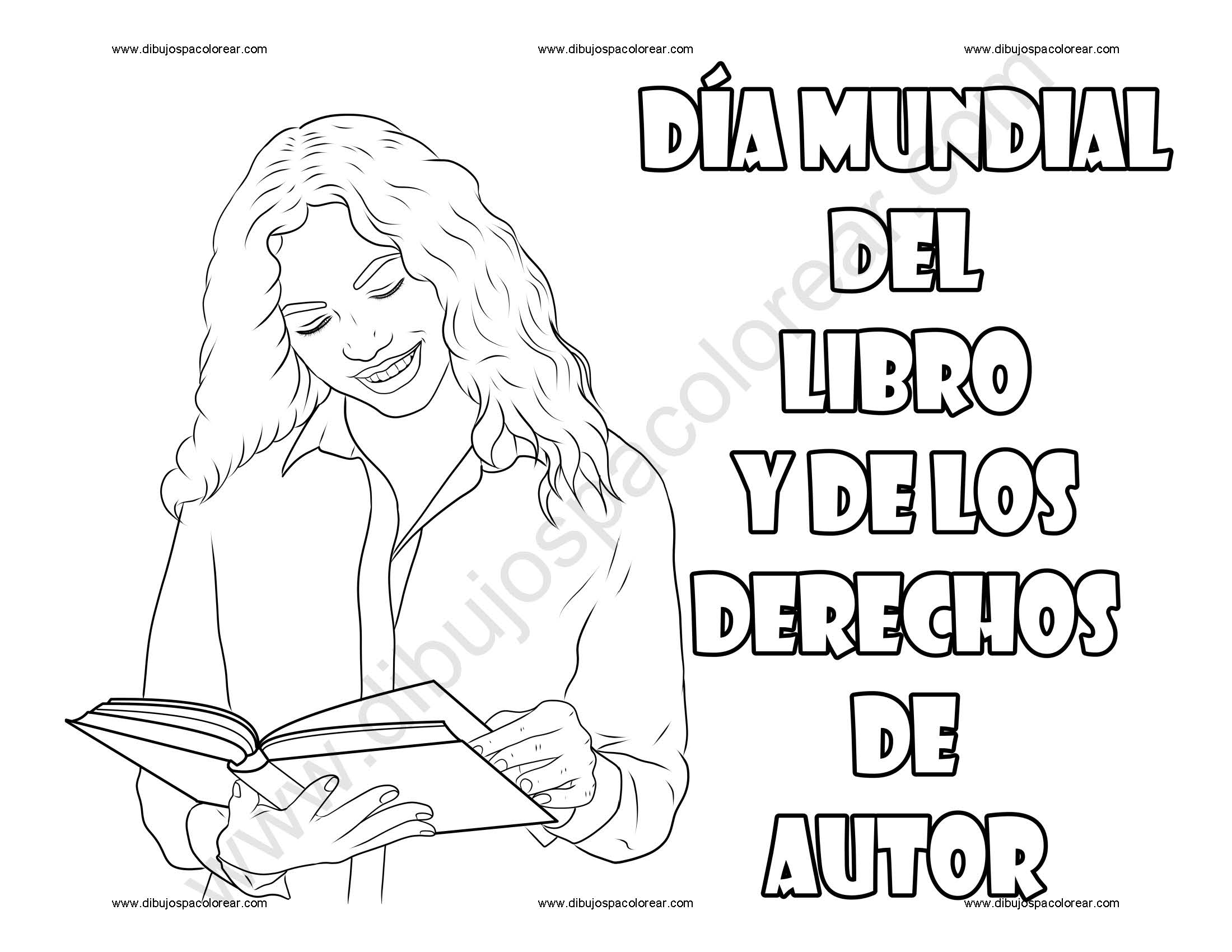 Día Mundial del Libro y de los Derechos de Autor dibujo a color y para colorear