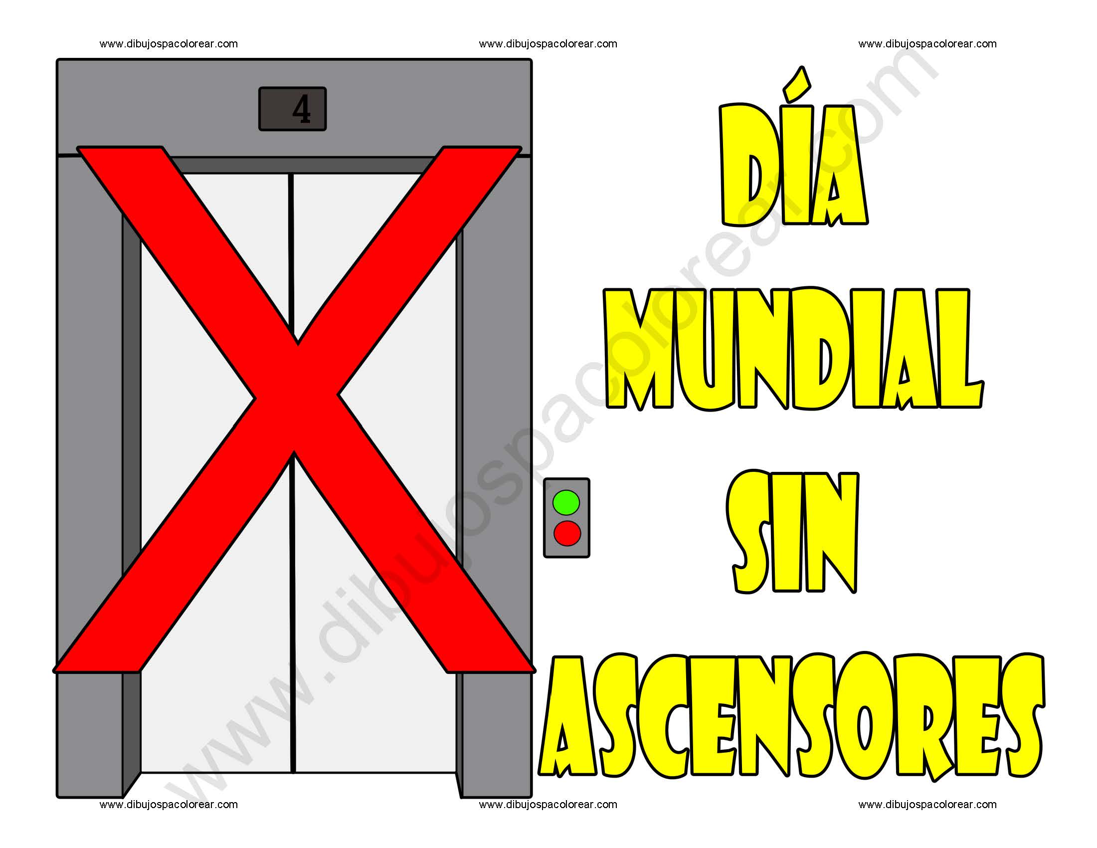 Dia mundial sin ascensores dibujo a color y para colorear.
