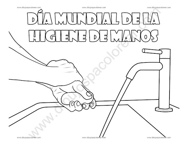 Día mundial de la Higiene de Manos dibujo a color y para colorear