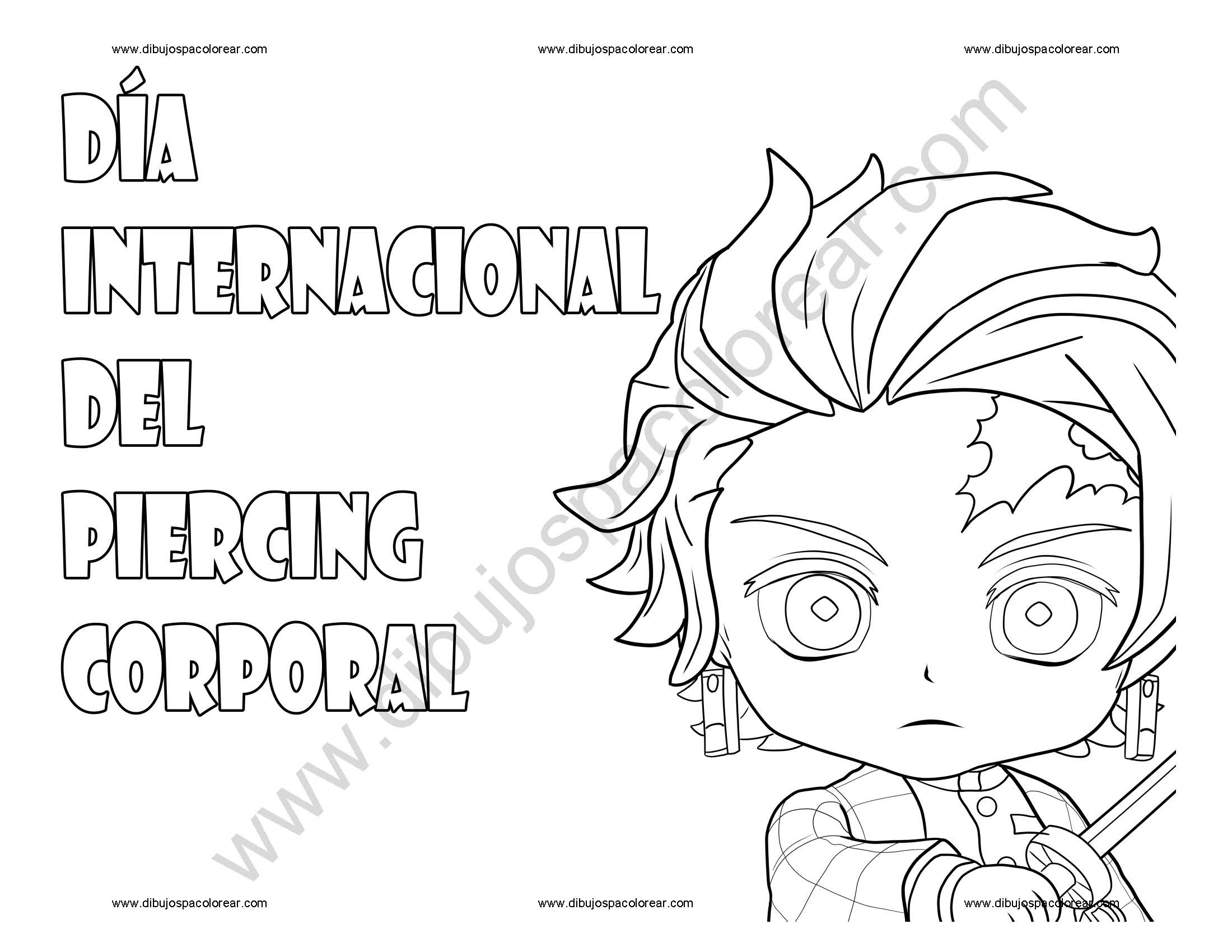 Día Internacional del Piercing Corporal dibujo a color y para colorear