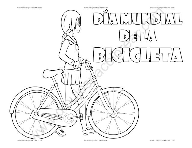 Día Mundial de la Bicicleta dibujo a color y para colorear
