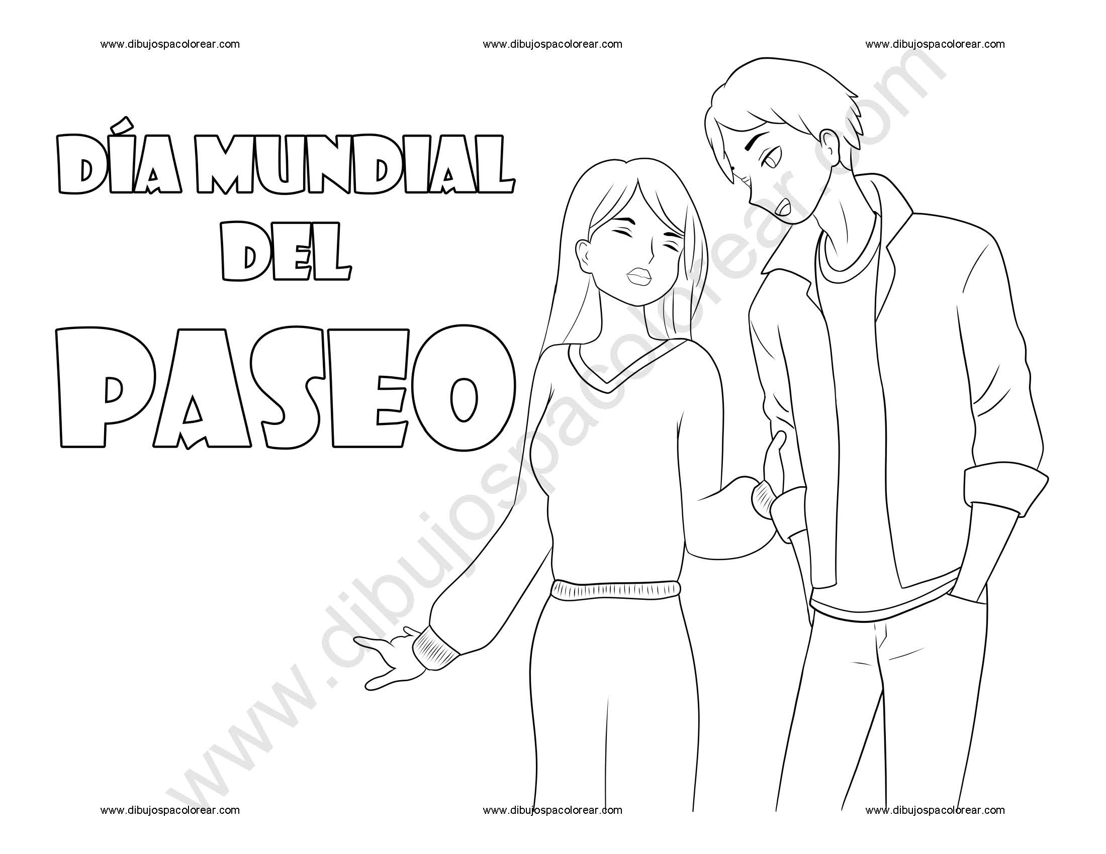 Día mundial del Paseo marinas dibujo a color y para colorear
