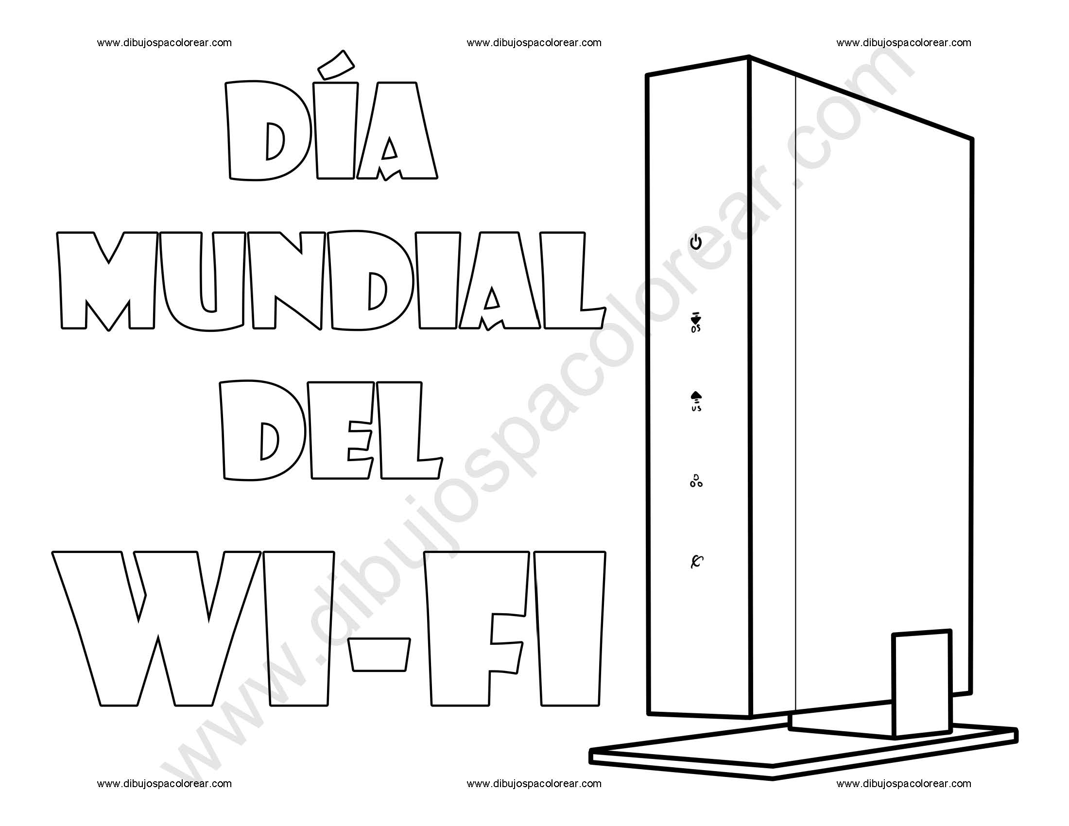 Día mundial del Wi-Fi dibujo a color y para colorear