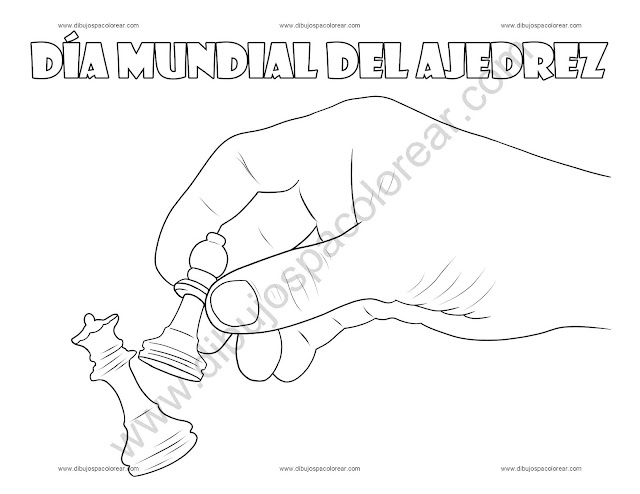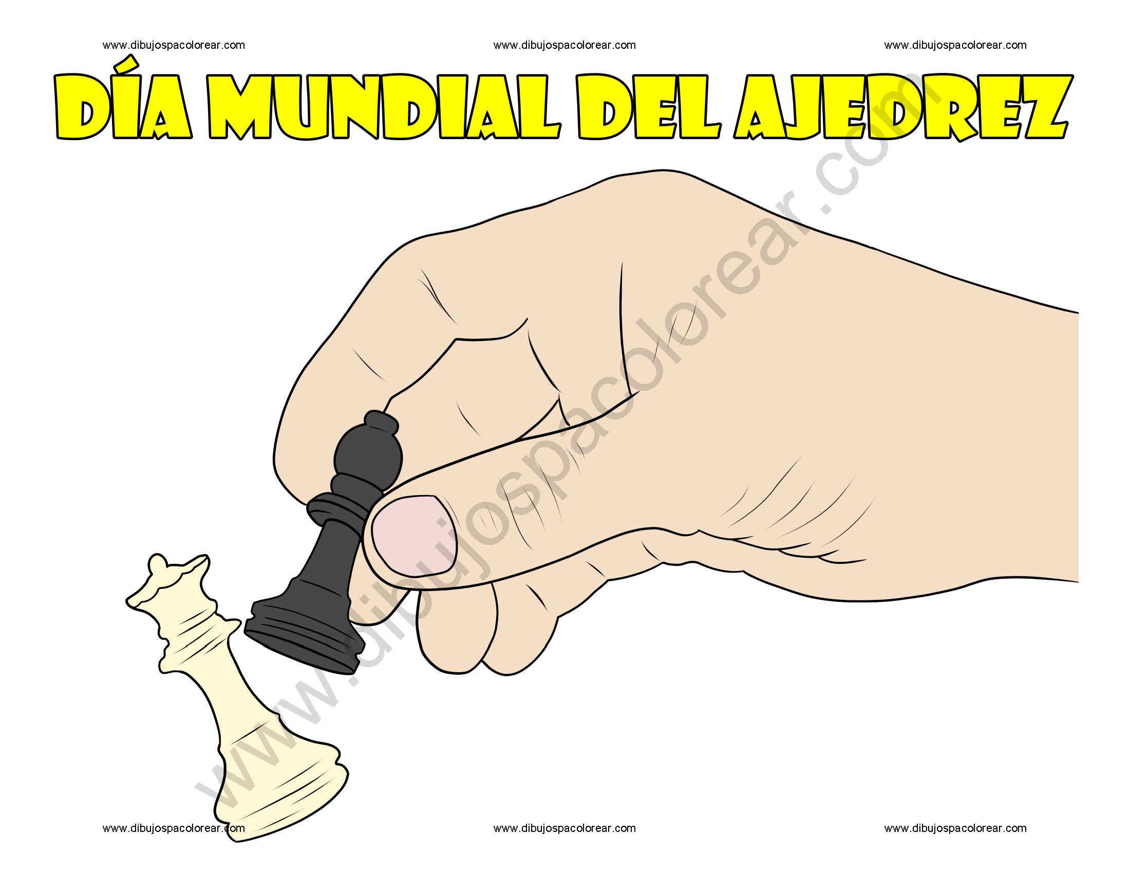 Día Mundial del Ajedrez dibujo a color y para colorear