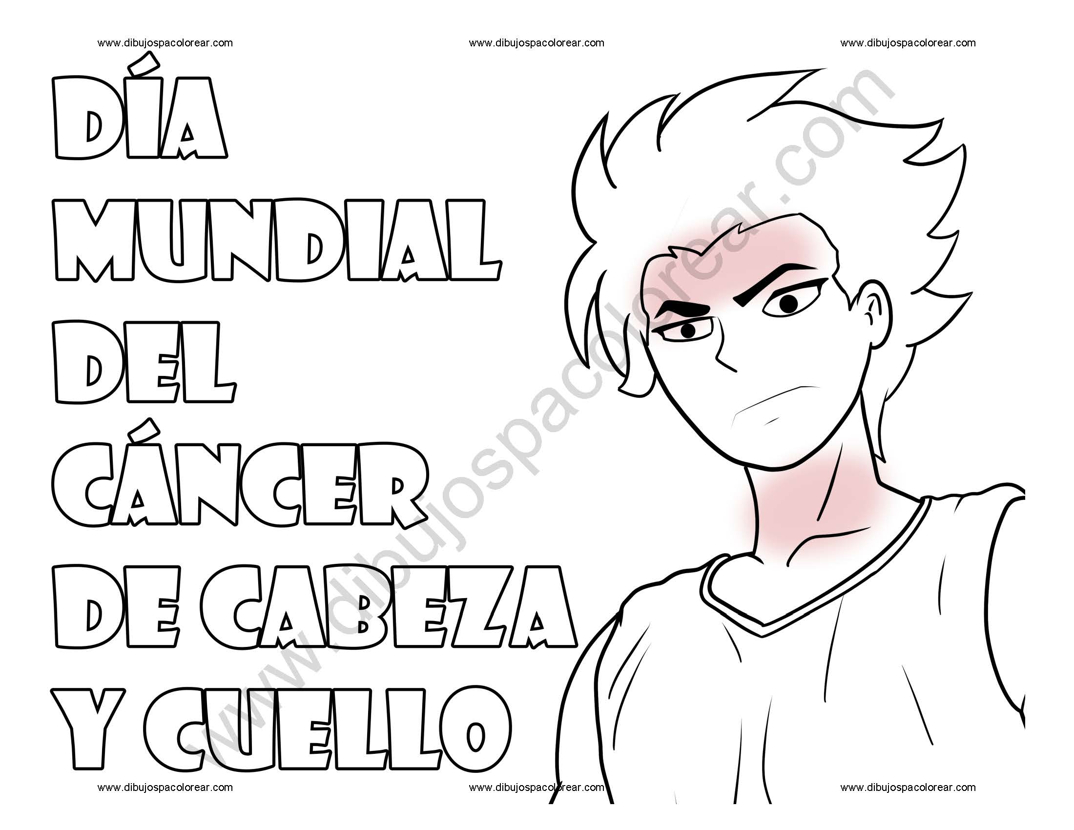Día Mundial del Cáncer de Cabeza y Cuello dibujo a color y para colorear